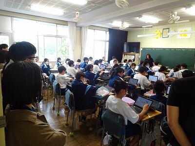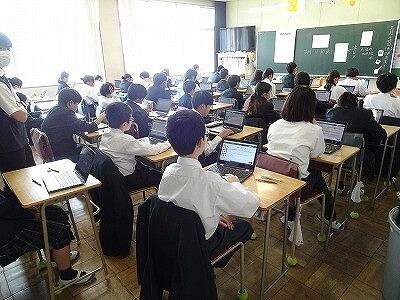 2年生の理科の授業です。植物の呼吸について、光合成は昼間だけですが、呼吸は昼夜を問わず行われていることを学んでいました。また、今日から週に1回来校する、理科の教員を目指す大学生も授業見学をしました。