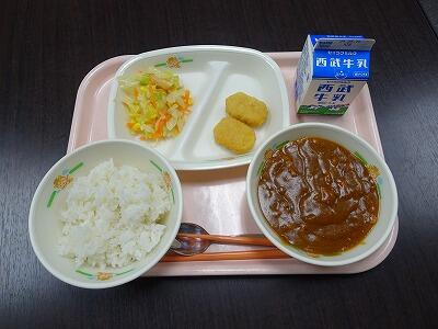 今日の給食は、若獅子カレーでした。埼玉西武ライオンズの選手寮の人気メニューです。動画でライオンズの蛭間選手のメッセージをもらいました。