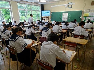 3年生は、本日、第1回のステップアップテストを実施しました。このテストは、学習の達成状況や進路指導の資料とするために、所沢市の公費で行われているテストです。3年生は、国数理社英の5教科を3回、1,2年生は、国数英の3教科を1月に1回実施します。