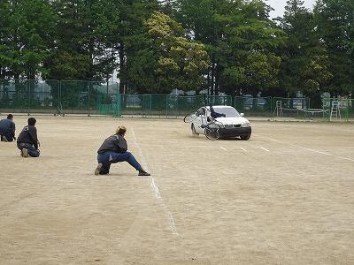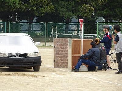 1,2校時に全校生徒を対象に自転車交通安全教室を行いました。所沢警察署、シャドウ・スタントプロダクションの皆さんのによるスケアードストレイト技法によって実施しました。実際に起きた事故の場面を再現することで、具体的に自分の普段の交通マナーを振り返ることができました。
