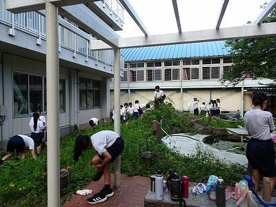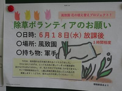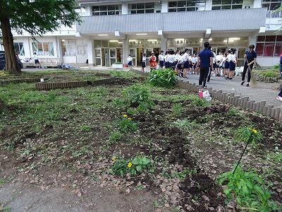 本日、放課後、風致園の整備を行いました。6月末に花の植え替え行うための準備で、100名を超える生徒がボランティアで参加してくれました。