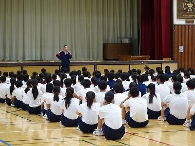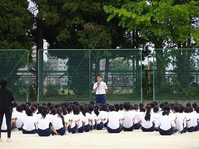 今日の生徒朝会は、体育祭の3つの団の解団式を行いました。それぞれの団の団長を中心に、団員へのお礼、今後へのメッセージを堂々と話しました。