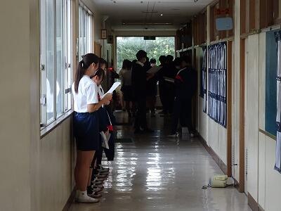 美原祭に向けて 投稿: 美原中承認者 (15:02) 来月4日の市民文化センターミューズでの美原祭まで、実質あと6日になりました。校舎内のあちこちから歌声が聞こえてきます。実行委員、指揮者、伴奏者、パートリーダーがリードし、歌声がまとまっていく様子がわかります。 また、今日は、1,2年生には、前期通知表を配布しました。