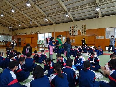 本日、3年生の技術・家庭科の授業で、乳幼児とのふれあい体験の授業を行いました。さくら児童館にご協力いただき、20組をこえる地元の親子の皆さんに来校いただき、赤ちゃんと一緒に遊んだり、子育てのお話を伺ったりしながら、温かい時間をすごすことができました。同時に、市のこども家庭センターの方に来校いただき、妊婦体験ジャケットをつけたり、体とこころの科学についてもお話いただいたりしました。ご協力いただいた皆様、ありがとうございました。今日の体験を通して、改めて自分自身の成長を実感し、命の大切さについて考えを深めることができました。
