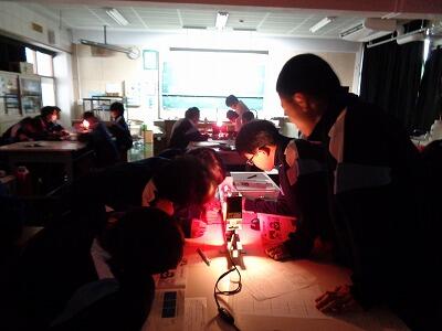 授業の様子から 投稿: 美原中承認者 (19:29) 1年生の理科の授業です。虫眼鏡を使って、光源やスクリーンを動かし、凸レンズによってできる像の大きさ、向き、一との関係を調べる実験を行っていました。小学校で学習を振り返りながら、実験を通して、学ぶ内容を深めていました。