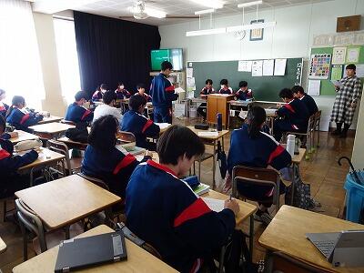 3年生の社会科の授業では、模擬裁判を行っていました。裁判員制度もあることから、子供たちも将来裁判員に選ばれることもあるかと思います。役割のある生徒、傍聴の生徒とともに熱心に取り組んでいました。