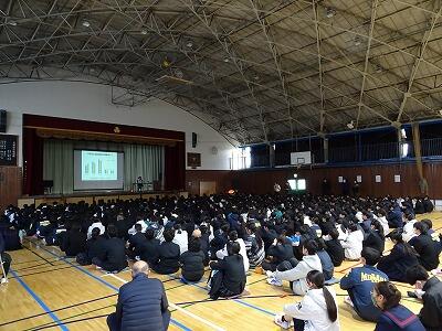 今日は、全校生徒を対象に薬物乱用防止教室を行いました。講師には、国立精神・神経医療研究センターで薬物依存の研究をされている 喜多村真紀 先生をお招きしました。喜多村先生からは、豊富な臨床経験をもとに、わかりやすく、時にはインタビューも交えて、薬物おもにオーバードーズ(市販薬の過剰摂取)への対応についてお話しいただきました。増えている精神科を受診した10代の患者の約7割がオーバードーズで悩んでいること、ある調査では、中学生の約55人に1人の割合でオーバードーズの経験があること、相談できる友人、大人がいないことが、オーバードーズを選んでしまう遠因になること等教えていただきました。