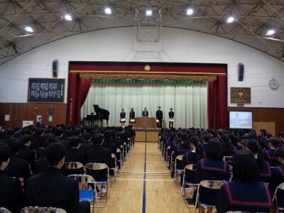 卒業式予行 投稿: 美原中承認者 (13:39) 明後日の卒業式に向けて、本日、予行を行いました。卒業生と在校生が一緒に練習をするのは今日だけですから、入退場や動きの確認を行いました。 また、予行終了後、3年生関係の最後の表彰を行いました。