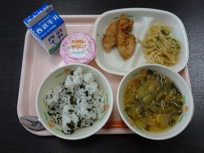 今週の26日で3学期も終わります。今日の給食は、進級お祝い献立ということで、お祝いいちごゼリーがつきました。給食も明日で終了です。