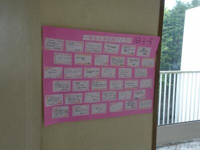 1年生の教室の前の廊下には、この3月に卒業した生徒の皆さんからの新入生へのメッセージが掲示されていました。温かいメッセージがたくさんあります。直接顔を合わせることはできませんでしたが、同じ「赤ジャージ」の美原生として、それぞれの場所で活躍をしてほしいです。