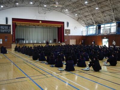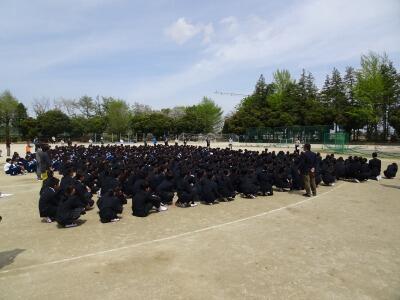 今日は、午前中3時間の授業でした。教科書配布、学級活動、学年集会等を行い、3校時は、避難経路の確認を目的とした全校での避難訓練を行いました。明日からは、給食も始まります。