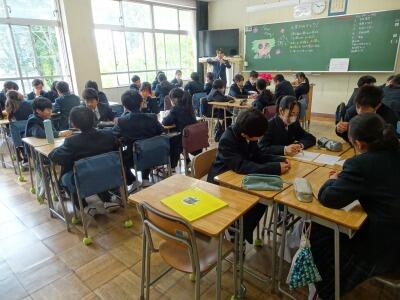 1年生は、学級活動の時間に「中学生になって」の作文を書きました。勉強のこと、部活動のこと、習い事のこと、新しい生活が始まることへの期待、希望が感じられました。