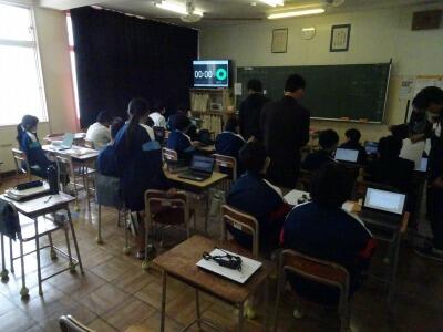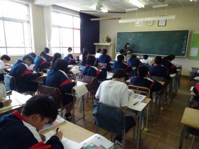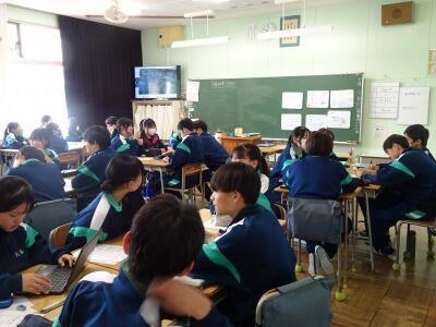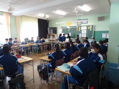 1年生の社会科の授業です。中学校では、地理、歴史、公民と3冊の教科書を使います。今日は、地理の学習をしていました。地球についてその全体像を学んでいました。1年生では、世界の地理を、2年生では、日本について学びます。